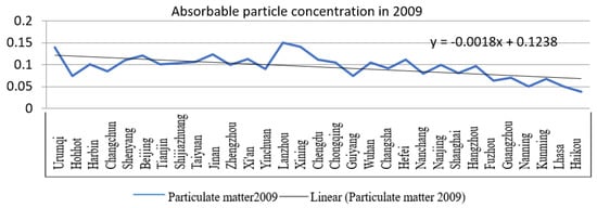 The distribution trend in absorbable particulate concentration in each province in 2009.