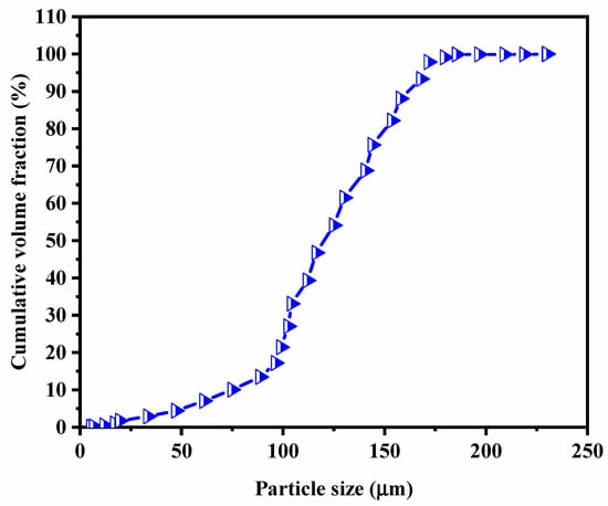 Before the experiment, the composition of waste oil and original soil were clarified. The PH of waste oil and the waste oil and original soil were 7.2 and 4.1, respectively. Moreover, the particle size distribution of the original soil was shown in Figure 2. Since the original soil was dried and grinded to 80 mesh, over 90% of the soil was with the particle size of 5–200 μm, which was benefit for the simulated contaminated soil preparation.