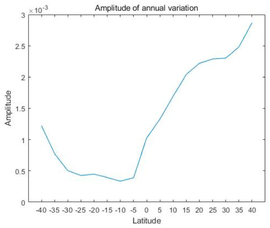 We calculated and quantified the amplitudes of the annual and semiannual variations using a least-squares fit technique. The results showed that the amplitudes of the annual and semiannual variations were variable as functions of latitude. Both the amplitude of the SAO and the AO had minimum values near the equator, and the annual oscillation was stronger at the equator than the semiannual oscillation. The amplitudes of the AO showed a distinct antisymmetric nature.