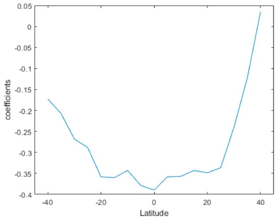 Figure 9, we further compared the correlation between the QBO in the atomic oxygen volume mixing ratio and the SQBO in the range from 40° S to 40° N., and the absolute value of the correlation coefficient decreased as the latitude increased, with a maximum value of 0.39 at the equator. The correlation coefficient was close to zero at 40° N and −0.134 at 40° S. This trend indicates that the SQBO impact diminished as the altitude increased. The variations in the atomic oxygen volume mixing ratio are not only subject to QBO in the stratosphere, but are also correlated with solar activity, SSW events and other dynamical processes. These perturbations may be responsible for the observed interannual variability in atomic oxygen at QBO scales.