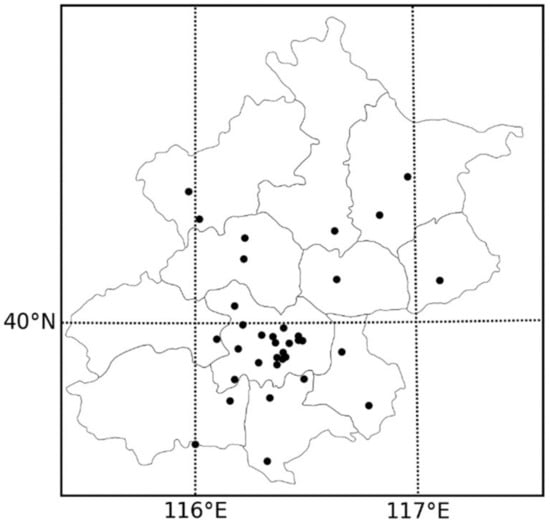 Distribution map of monitoring stations in Beijing.