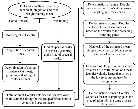 A flowchart that briefly describes the procedures of estimating Doppler spectral parameters is shown in