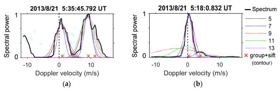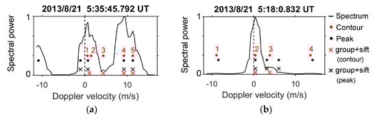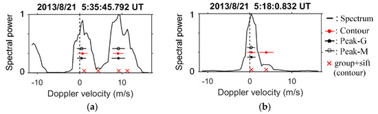 The aforementioned algorithms and tracings focused on extracting the Doppler velocity of clear-air motion. In case of strong hydrometeor echoes that are closer to the clear-air echoes in the Doppler spectrum, Gan et al. [