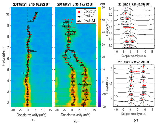 10]. After suppressing the signals of ground cutters or other interferences, tracing the Doppler profiles of the echoes throughout the height is more applicable. For example, Anandan et al. [