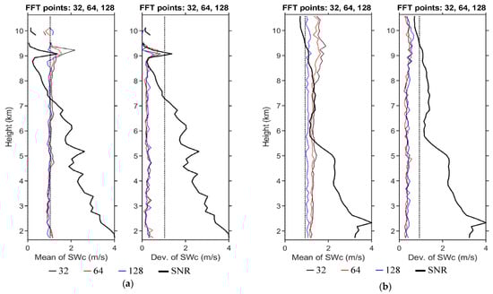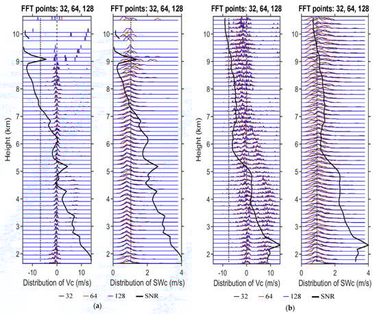Figure 10b (refer to the curves of 32- and 64-point FFT). Nevertheless, since the Doppler spectral coverage in the height interval between 7 and 10 km was quite broad in