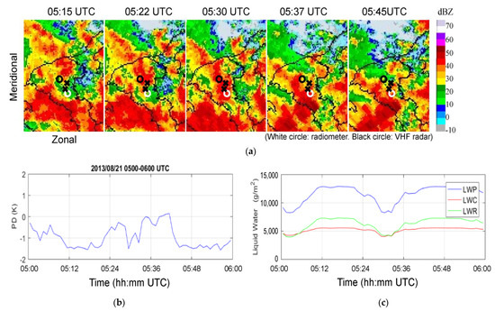 Finally, as an application of Doppler profiling results and an extended study on the convective precipitation observed, the hydrometeor parameters (brightness temperature, liquid water content, and so on) measured by a dual-polarization microwave radiometer and the spectral parameters observed by the VHF radar were inspected jointly to survey the interrelation between hydrometeor particles and clear-air turbulence in such a strongly convective atmosphere. There are a few collaborative studies with VHF/UHF radar and microwave radiometer in the literature that aimed at atmospheric humidity or temperature profiling [