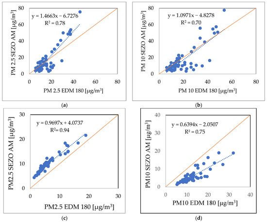 3.1. SEZO AM and EDM 180: Comparison of PM2.5 and PM10 Concentrations Obtained during Two Campaigns
