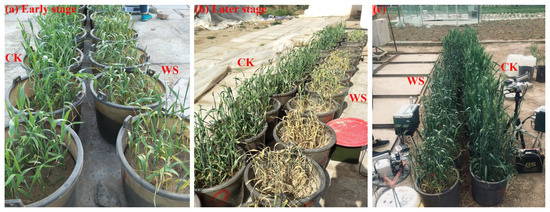 Drought is a recurring, complex, and extreme climatic phenomenon characterized by subnormal precipitation for months to years; it is one of the most serious constraints that prevents plants from attaining their full potential, particularly in arid and semi-arid regions, and it will have a negative impact on agricultural production [1,2,3]. At present, due to climate change, droughts grow concurrently in space and time [4]. Flash droughts which have garnered much attention in recent years, have the characteristics of sudden occurrence and short-term, rapid development. They are likely to cause huge damage to crops because it is difficult for crops to adapt to rapid changes in a short period of time during the sensitive developmental stages [5,6]. They can even lead to the occurrence of some compounded, extreme events with subsequent effects, such as an increased risk of wildfires, the depletion of water resources, decreased air quality, and food security issues [7]. However, due to insufficient relevant knowledge about them, most climate models fail to predict the occurrence of flash droughts early [8]. According to our past experience, a continuous drought formed in a potted, control experiment can make the soil water decrease quickly in about 7 days and reduce the photosynthetic rate to 0 from a normal level, which are characteristics similar to those of a flash drought. Therefore, this paper took the drought process as its research object, and defined it as rapid drought, so as to obtain a further understanding of flash drought.
