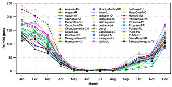 | Rain gauges (SENAMHI) (Hunziker et al., 2017) [52] | 14° S–18° S, 71° W–69° W 1964–2013 | Daily reports from 34 rain gauges were used to derive the gridded data. | (http://www.geography.unibe.ch/research/climatology group/research_projects/decade/index_eng.html). Accessed on 21 July 2019 |