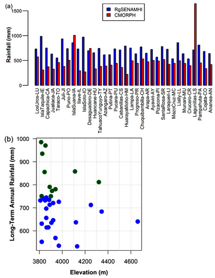 - The CMORPH and RgSENAMHI rainfall amounts show weak to moderate correlations (41% and 59%), respectively. Higher correlations were observed over the lake (>0.6). Based on the period and study area, there was a distinct difference between the accuracy of the CMORPH and RgSENAMHI. It was also observed that the accuracy of the CMORPH in the LTb shows large spatial variability [4,5]. On the other hand, efforts should be devoted toward applying spatially and temporally-varying bias correction to the CMORPH product and evaluating the implications of such adjustments for water resource applications in the study area [8].