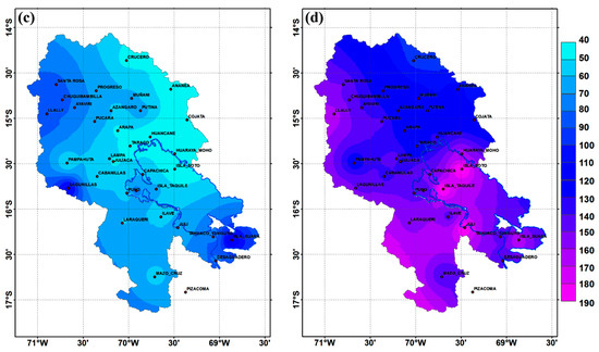 - The CMORPH estimates exhibit remarkable accordance with the RgSENAMHI data in terms of their precipitation patterns and captured daily rainfall frequency better that rainfall amounts over the LTb. The precipitation maximum mainly exist over two regions: Lake Titicaca and the surrounding terrain. However, the magnitude and extent of the maximum of the CMORPH rainfall were smaller than those of the RgSENAMHI rainfall. On the other hand, rainfall occurrences are underestimated over most of the LTb, but there are differences over some areas (e.g., Lagunillas, Isla Suana, and Desaguaderos stations) where rainfall is overestimated.
