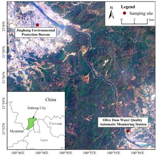 The atmospheric sampling sites of this study were the Municipal Environmental Protection Bureau and the Olive Dam Water Quality Automatic Monitoring Station of Jinghong. As shown in Figure 1, the Jinghong Municipal Environmental Protection Bureau is located in the city’s urban center, where transportation is more frequent. The Olive Dam Water Quality Automatic Monitoring Station is located in the suburb, with relatively little human activity and transportation; it was taken as the suburban sampling control site. By sampling the urban and suburban areas, we can understand the difference in VOC species concentration in the suburban and urban areas of Jinghong City.