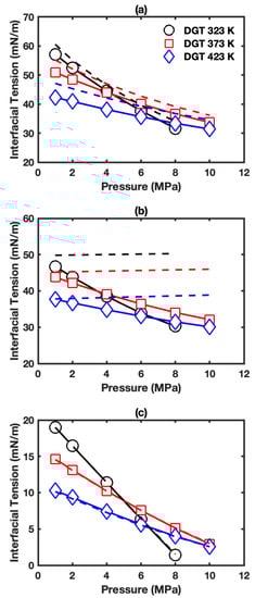- Jennings, H.Y., Jr. The effect of temperature and pressure on the interfacial tension of benzene-water and normal decane-water. J. Colloid Interface Sci. 1967, 24, 323–329. [Google Scholar] [CrossRef]