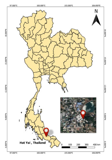Location of sampling site, in Hat Yai, Songkhla, southern Thailand; Prince of Songkla University (PSU).