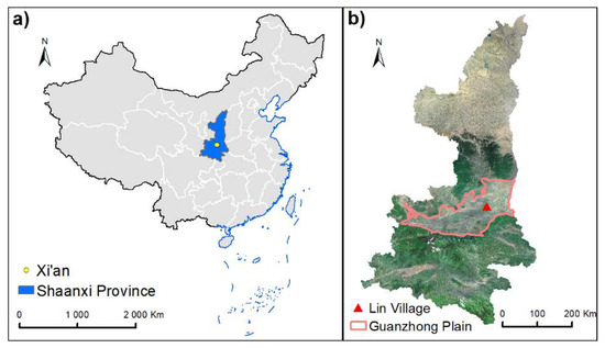 Location of the sampling site in a rural area of Guanzhong Plain, Northwest China. (a) Map of China, (b) Sampling point location of Guanzhong Plain.