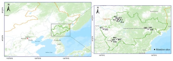 The specific location of monitoring stations in the east of Jilin Province.