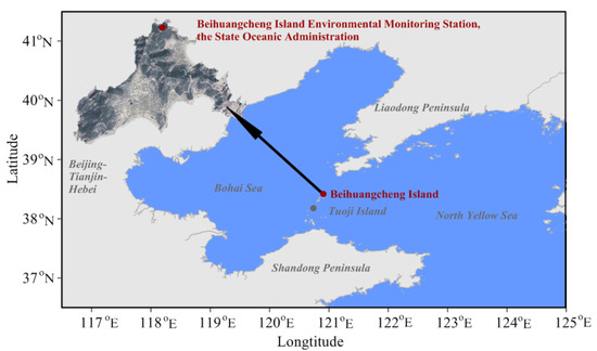 PM2.5 samples were collected from Beihuangcheng Island (38°24′ N, 120°55′ E). As shown in Figure 1, the island is located at the junction of the Bohai Sea and the North Yellow Sea. It is about 65 km from Shandong Peninsula in the south, nearly 43 km from Liaodong Peninsula in the north, and about 185 km from Beijing-Tianjin-Hebei region in the west [21,22]. The island covers an area of about 2.72 km2 and has a coastline of 10.32 km. The island has two administrative villages with a registered population of more than 2400 people. The area of the Beihuangcheng Island is the warm temperate continental monsoon climate, with an annual average temperature of 11.9 °C and annual average precipitation of 560 mm. There are almost no industrial enterprises, and the majority of islanders make a living by fishing and seafood farming. There is no obvious local emission source, which indicates that the air pollution level and source contribution of PAHs in the island can well reflect the background characteristics around the Bohai Sea [5,21,22].
