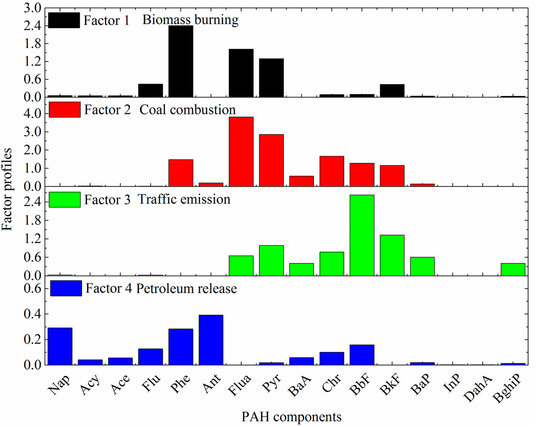 Factor profiles of PAH components in PM2.5 identified by the PMF modeling.