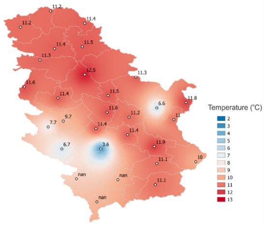 Annual temperatures at Serbian climate stations (1981–2010) (Source: RHMS Serbia).