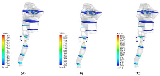 - The maximum velocity occurred in the lower part of the larynx. After this part, the oropharynx showed a significantly higher velocity than the other parts;