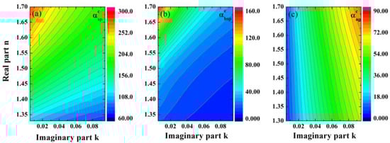 The example of 2-D diagrams of (a) the scattering, (b) backscattering, and (c) absorption coefficients. The refractive index (n, k) can be retrieved from the corresponding observed optical coefficients.