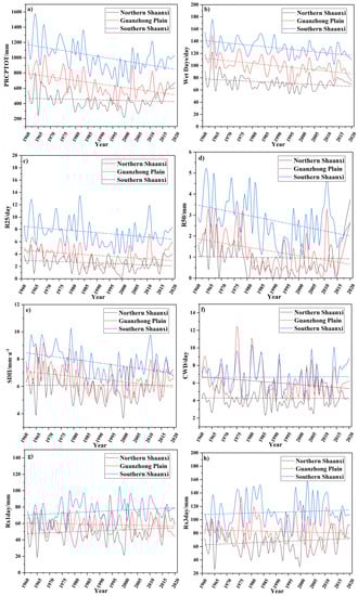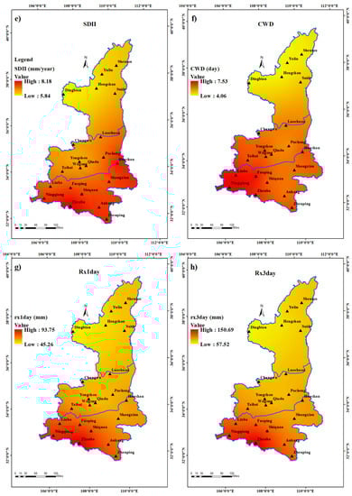 - Jiang, R.; Xie, J.; Zhao, Y.; He, H.; He, G. Spatiotemporal variability of extreme precipitation in Shaanxi province under climate change. Arch. Meteorol. Geophys. Bioclimatol. Ser. B 2016, 130, 831–845. [Google Scholar] [CrossRef]