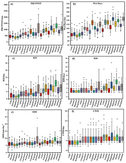 | PRCPTOT | Wet Days | R30 | R50 | SDII | CWD | Rx1day | Rx3day | |
