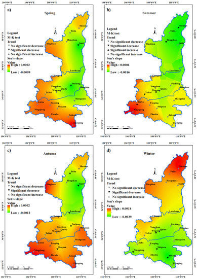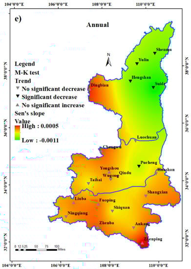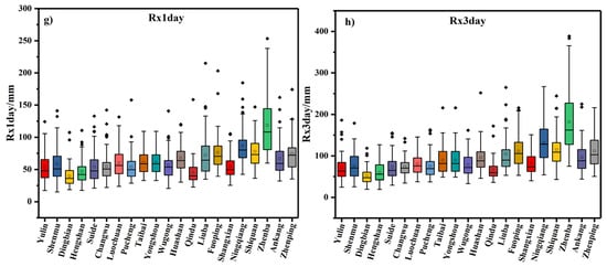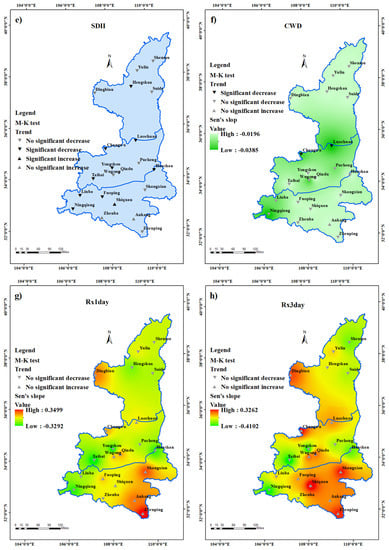 - Liu, W.; Zhang, M.; Wang, S.; Wang, B.; Li, F.; Che, Y. Changes in precipitation extremes over Shaanxi Province, northwestern China, during 1960–2011. Quat. Int. 2013, 313, 118–129. [Google Scholar] [CrossRef]