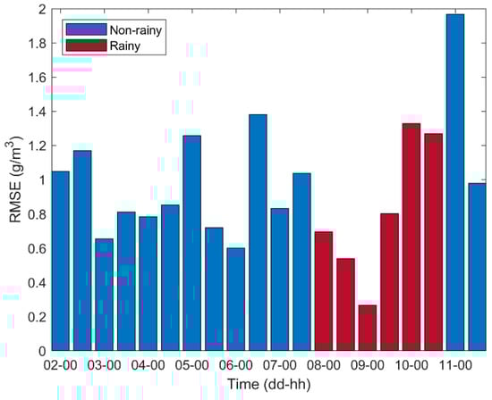 RMSEs (g/m3) of Scheme 4 during rainy and non-rainy periods.