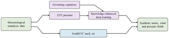 Schematic of knowledge-enhanced deep learning for the simulation of ETC wind risk.