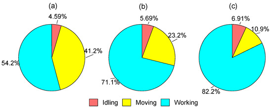 Real-world operation modal share for test machines: (a) WL; (b) FL; (c) EX.