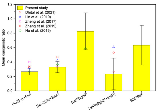 - Katsoyiannis, A.; Sweetman, A.J.; Jones, K.C. PAH molecular diagnostic ratios applied to atmospheric sources: A critical evaluation using two decades of source inventory and air concentration data from the UK. Environ. Sci. Technol. 2011, 45, 8897–8906. [Google Scholar] [CrossRef] [PubMed]