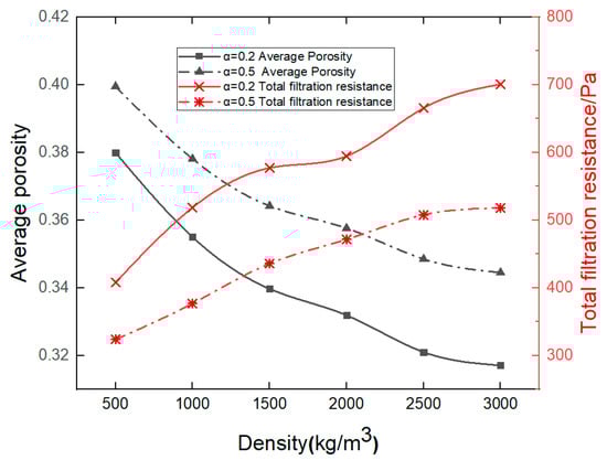 Effect of density on the average porosity and the total filtration resistance of the filter cake.
