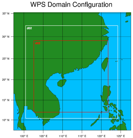 WRF preprocessing system (WPS) domains of this study, with the innermost domain covering entire South China Sea.
