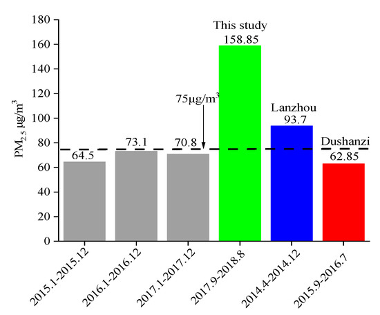 - Qiu, X.; Duan, L.; Cao, J.; Wang, S.L.; Chai, F.H.; Hu, J.; Zhang, J.Q.; Yang, Y. Chemical composition and source apportionment of PM10 and PM2.5 in different functional areas of Lanzhou, China. J. Environ. Sci. 2016, 40, 75–83. [Google Scholar] [CrossRef] [PubMed]