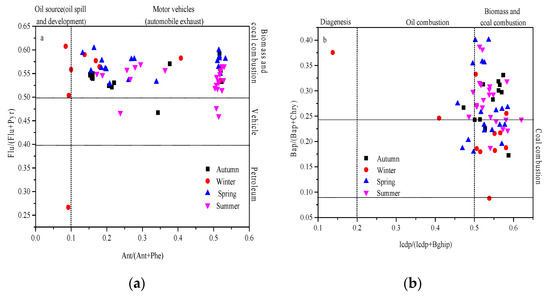 - The middle molecular weight polycyclic aromatic hydrocarbons in the PM2.5 accounted for the highest proportion of the atmosphere in Urumqi. The polycyclic aromatic hydrocarbon ratio method showed that the sources of Urumqi PAHs were motor vehicle exhaust emissions, biomass combustion, and oil and coal combustion. These sources tend to be imported sources and high-temperature combustion processes.