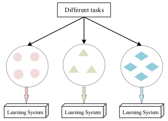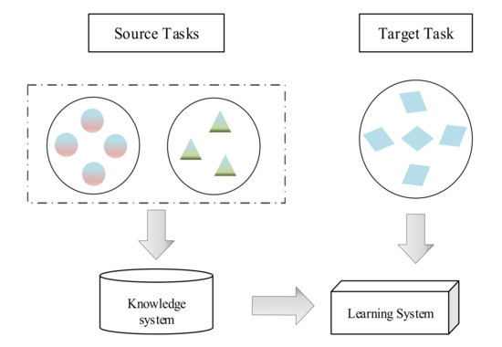In traditional machine learning tasks, to ensure the accuracy and reliability of trained models, there are generally two assumptions: (1) The training samples and test samples are independent and identically distributed. (2) There must be enough training samples available to learn and get a good model. However, in practical application, these two conditions often cannot be met [32]. Transfer learning is a new machine learning method that uses existing knowledge to solve different but related fields and tasks. This approach relaxes two basic assumptions in traditional machine learning, whose purpose is to transfer the existing knowledge to solve the learning problem where there is only a small amount of labeled sample data in the target domain. The following figure shows how transfer learning differs from traditional machine learning processes.