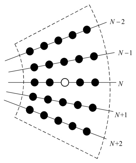 Filtering isolated points requires traversing every radar echo database, and if it is valid, a rectangular window is created on the data. Then, the total number of valid data and the proportion of valid data of all data in the window are obtained. Finally, a threshold of (typically set to 0.7, it is verified that the threshold between 0.5 and 0.7 is effective to filter isolated points) is set to determine the isolated point. Meanwhile, if is less than , it will be judged as an isolated point and set as invalid data. The specific equation is as follows: