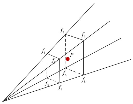 The method of eight-point linear interpolation is adopted. The schematic of this method is shown in Figure 3: