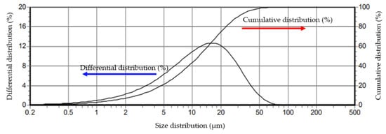 The experimental dust was collected from a mine in southern China. The collected dust was measured by the Zhuhai Omega LS-C (II) laser particle size analyzer. The result is shown in Figure 3, D50 = 11.58 μm, D75 = 19.92 μm. According to the particle size distribution results, the proportion of dust particles with a particle size of less than 19.92 μm was 75%.