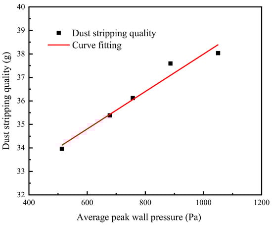 The fitting results show that the correlation coefficient R2 between the fitted average wall surface peak pressure and the quality of dust stripping is 0.96224, indicating that the fitting is good.