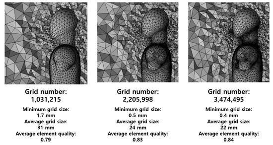 - Lee, K.; Oh, J.; Kim, D.; Yoo, J.; Yun, G.J.; Kim, J. Effects of the filter microstructure and ambient air condition on the aerodynamic dispersion of sneezing droplets: A multiscale and multiphysics simulation study. Phys. Fluids 2021, 33, 063317. [Google Scholar] [CrossRef]