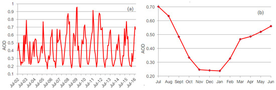 (a). The AOD ‘s RTS; (b) AOD’s RTS monthly average.