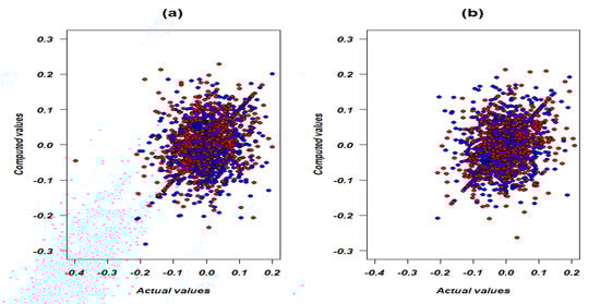 The results in Table 2 show that the coefficients of both regression models in Equations (15) and (16) are statistically significant (p-value ). With the significance of the quadratic term, the curvature trend of the scatterplot in Figure 4 is approved. Thus, second-order polynomial regression provides the model that fits the raw data.