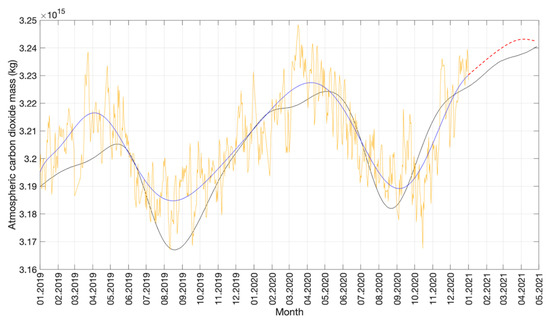 To validate the proposed model, Fraser’s model [8] was applied. Assuming the CO2 concentration data from NOAA, the global CO2 atmospheric mass was calculated for the period from 1980 to 2021. However, since the elaboration of the model is time-consuming, the global CO2 atmospheric mass from OCO2 was calculated for 2019 and 2020.