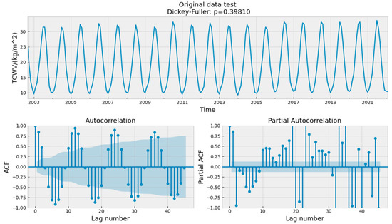 Time series, autocorrelation and partial autocorrelation of TCWV.