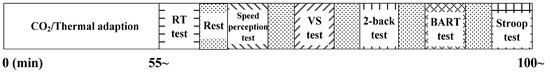 - Zhang, J.; Pang, L.P.; Cao, X.D.; Wanyan, X.R.; Wang, X.; Liang, J.; Zhang, L. The effects of elevated carbon dioxide concentration and mental workload on task performance in an enclosed environmental chamber. Build. Environ. 2020, 178, 106938. [Google Scholar] [CrossRef]