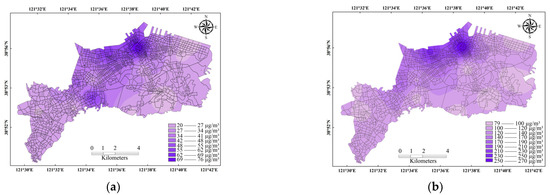 This also reflects the short-term optimization of air pollution in Chinese cities due to the control of COVID-19 [44]. With the short-term closure of Dalian during the epidemic period, the traffic flow of people was significantly reduced. Taking the results of the main urban area of Dalian as an example, within 100 m, the road density has an excellent interference effect on the formation of pollutants, and the building density interferes with the concentration of contaminants and wind conditions through flow. In coastal cities such as Dalian, urban planning and construction must implement the regionally balanced development strategy to avoid congested urban centers, prevent large amounts of pollutants, and reduce pollution sources.