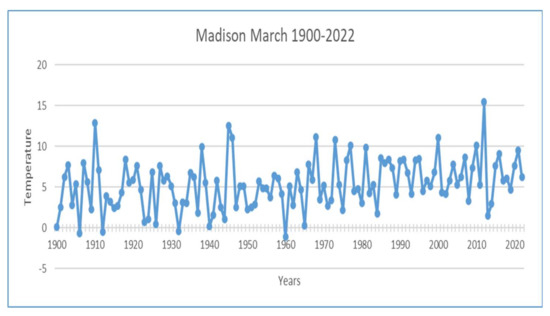 - National Centers for Environmental Information (NCEI), March 2012 National Overview, Temperatures—Departure from Average. Available online: https://www.ncei.noaa.gov/access/monitoring/monthly-report/national/201203 (accessed on 14 April 2022).