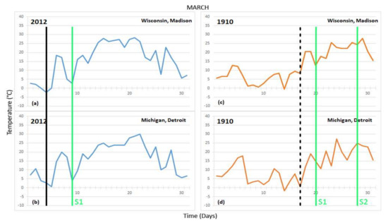 4.3. March 1910: An Earlier Comparable to the March 2012 Heat Wave
